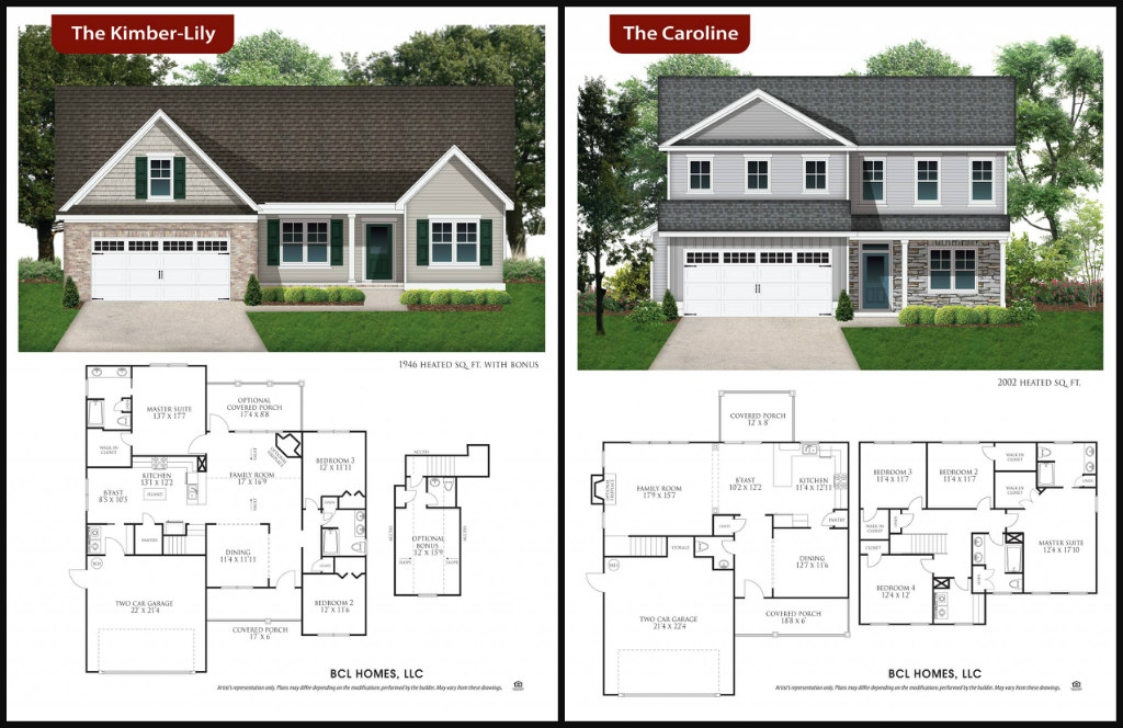 Our model home at 24 Amos Court will follow the "Kimber Lily" design - a 1946 sqft SFH with 3 bedrooms, 2 full and 1 half bath, open common area with vaulted ceiling, rear screened porch and finished upper bonus room.